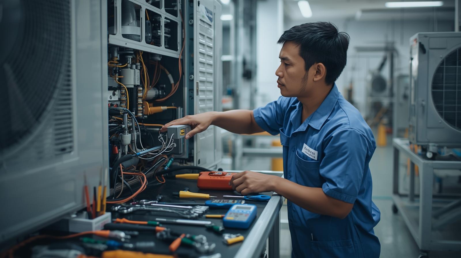 Langkah pertama adalah pemeriksaan menyeluruh pada kondisi fisik unit AC, baik itu unit indoor maupun outdoor. Teknisi akan memeriksa apakah ada kerusakan pada komponen eksternal, kebocoran, atau masalah dengan saluran pembuangan kondensasi.